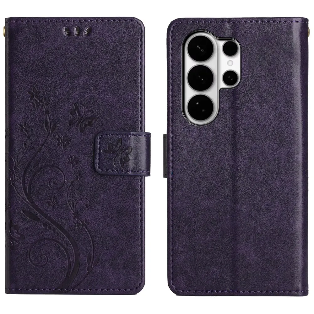Tmavěfialové peněženkové pouzdro Flowers na Samsung Galaxy S26 Ultra