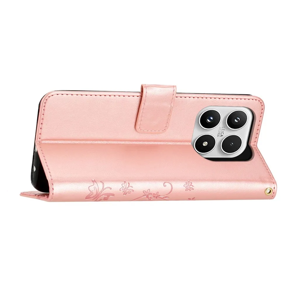 Růžovozlaté peněženkové pouzdro Flowers na mobil Xiaomi 17