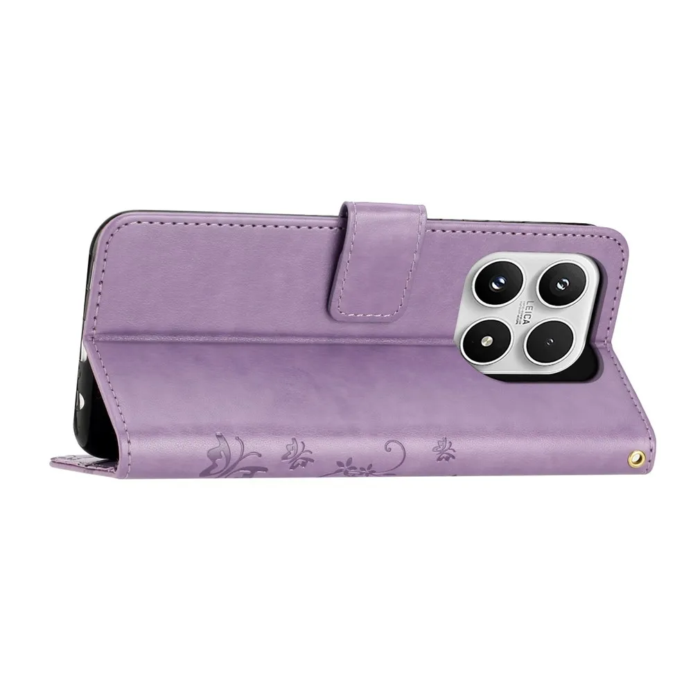 Světlefialové peněženkové pouzdro Flowers na mobil Xiaomi 17