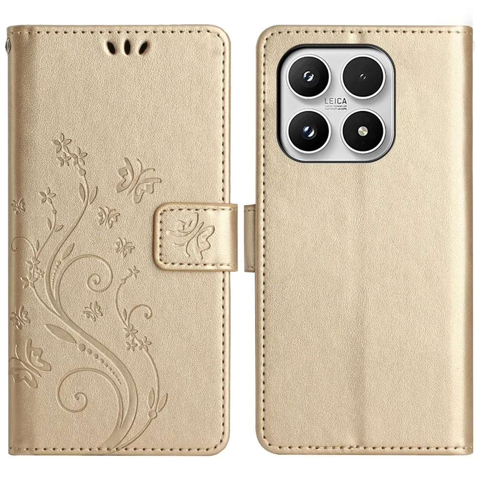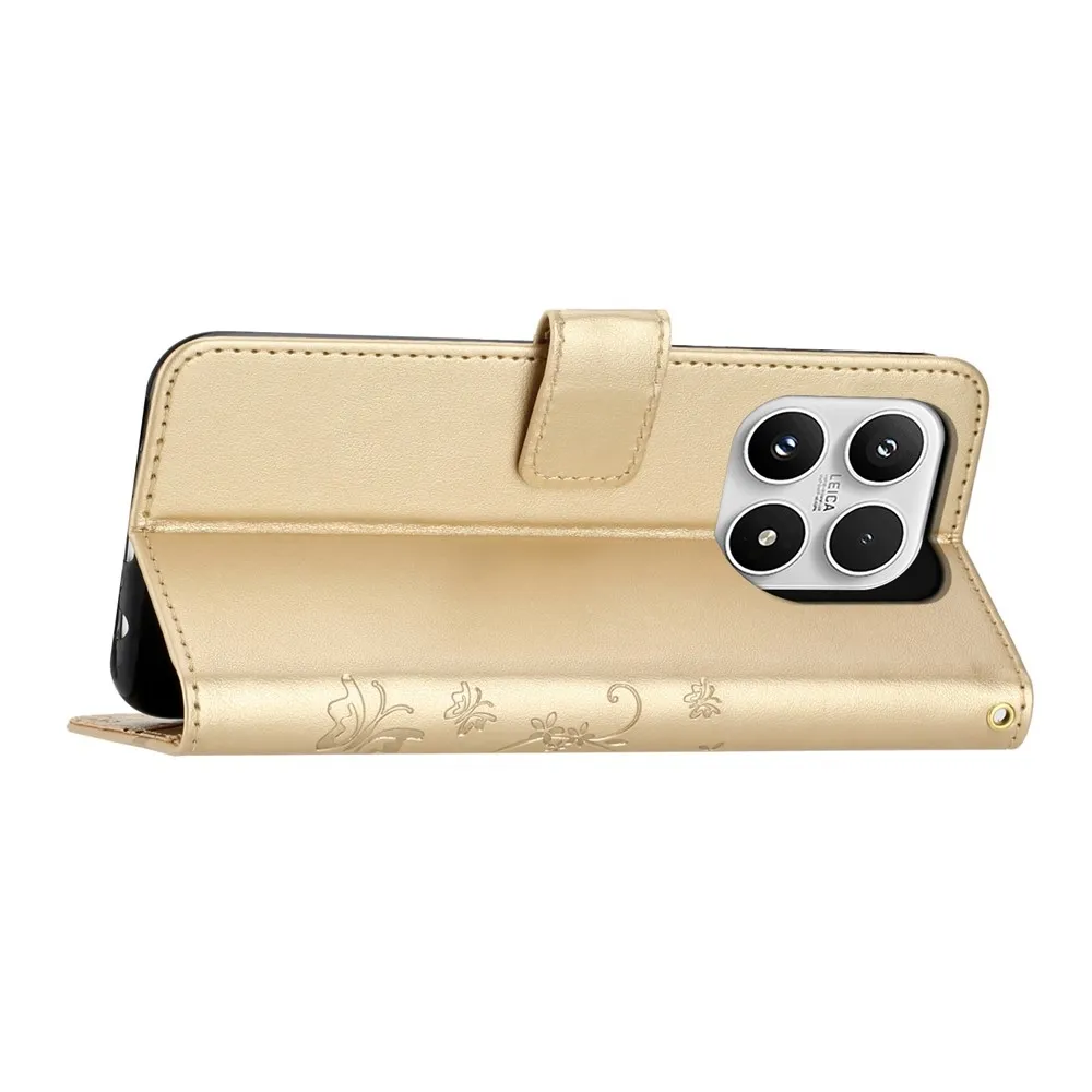Zlaté peněženkové pouzdro Flowers na mobil Xiaomi 17