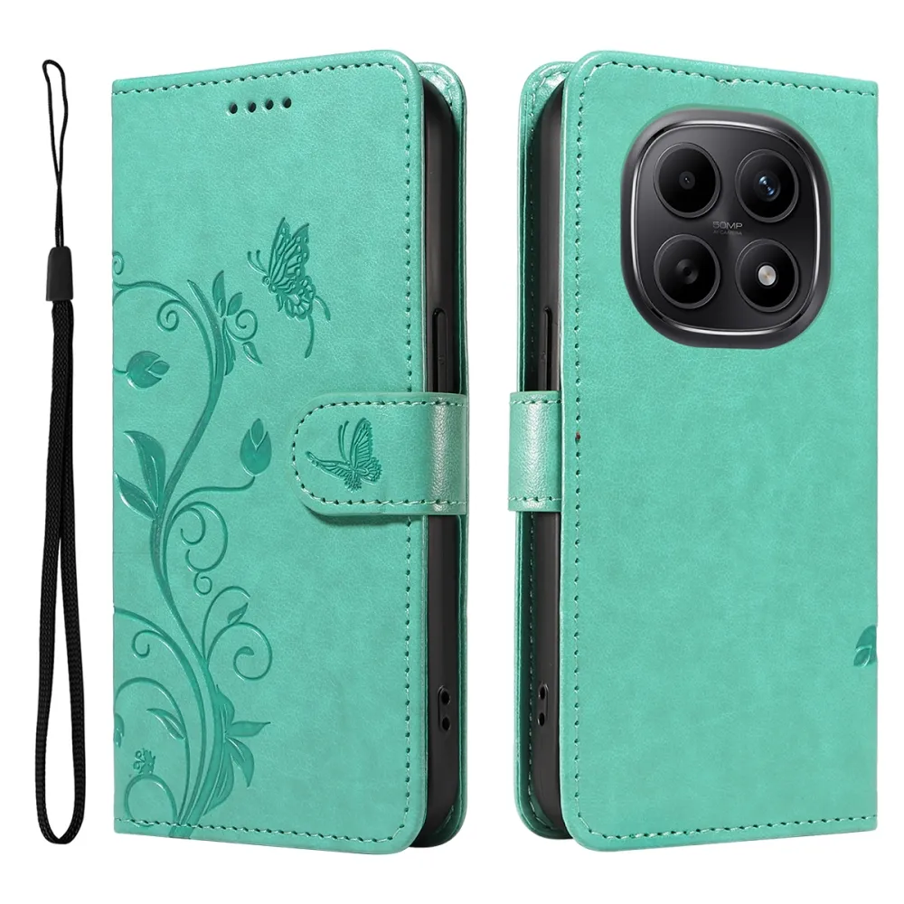 Flowers knížkové pouzdro na Xiaomi Poco M8 5G/Redmi Note 15 5G/Note 15 4G - modrozelené