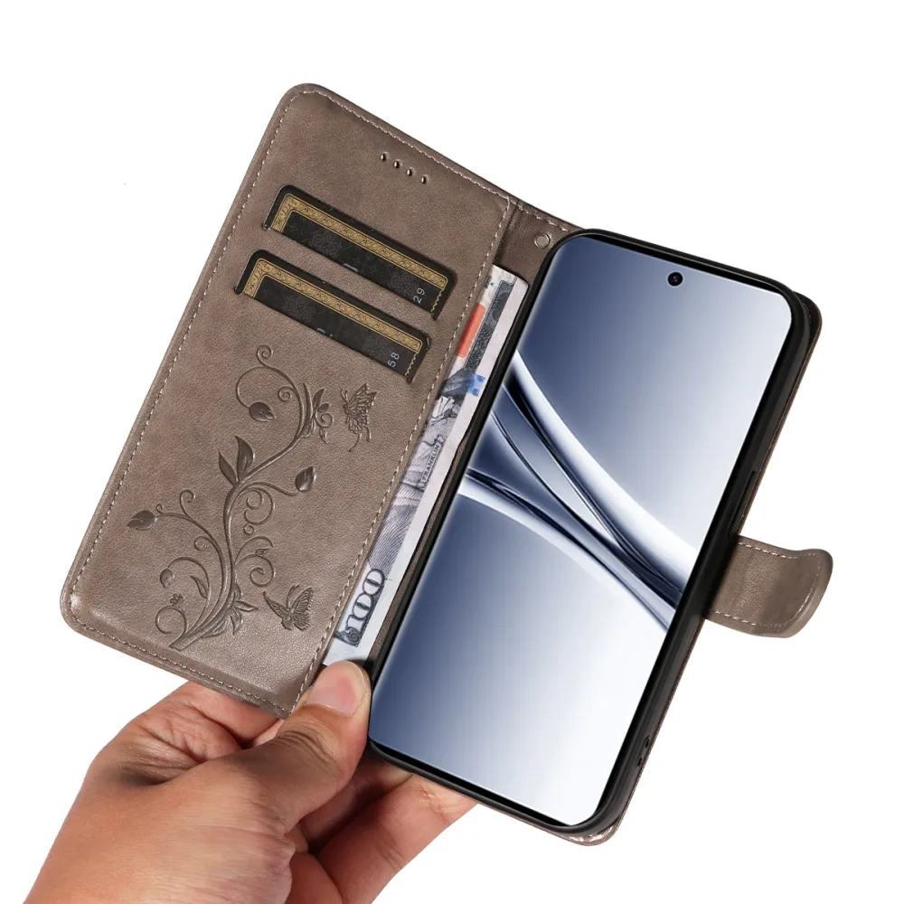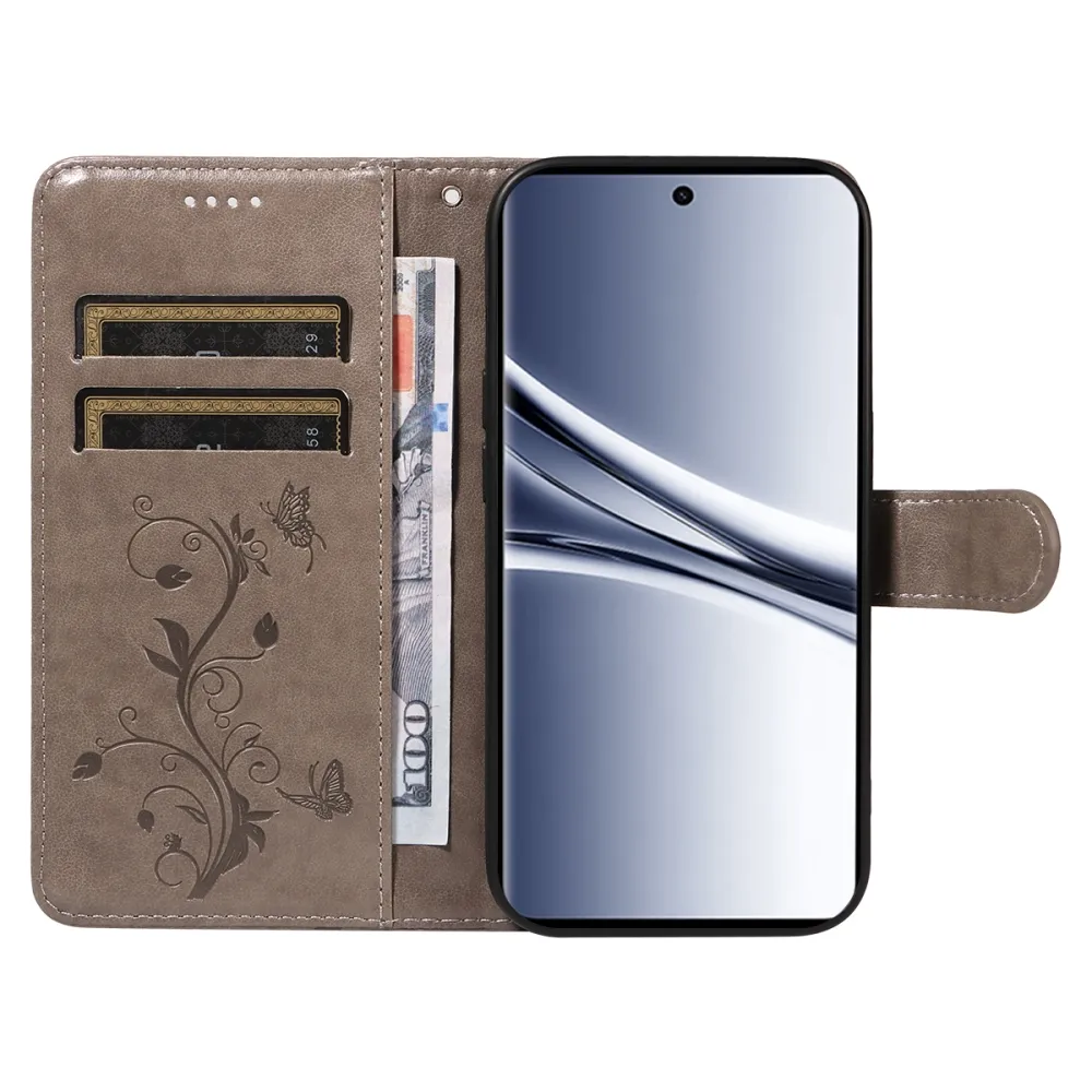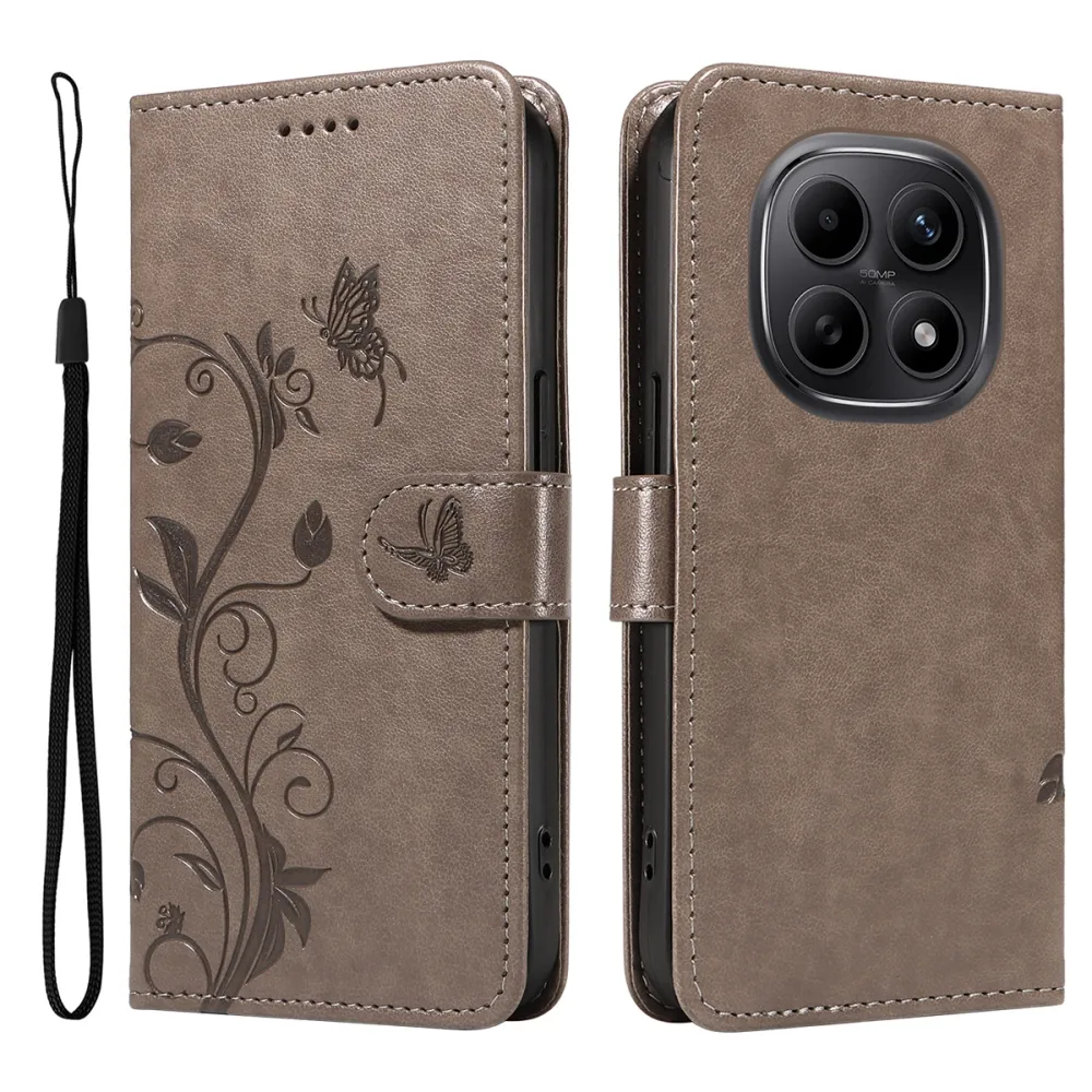 Flowers knížkové pouzdro na Xiaomi Poco M8 5G/Redmi Note 15 5G/Note 15 4G - šedé