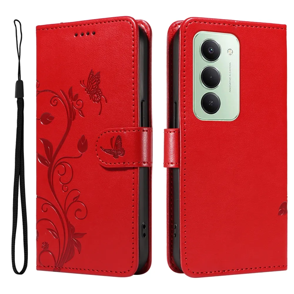 Červené peněženkové pouzdro Flowers na mobil Xiaomi Redmi 15 5G (169mm)