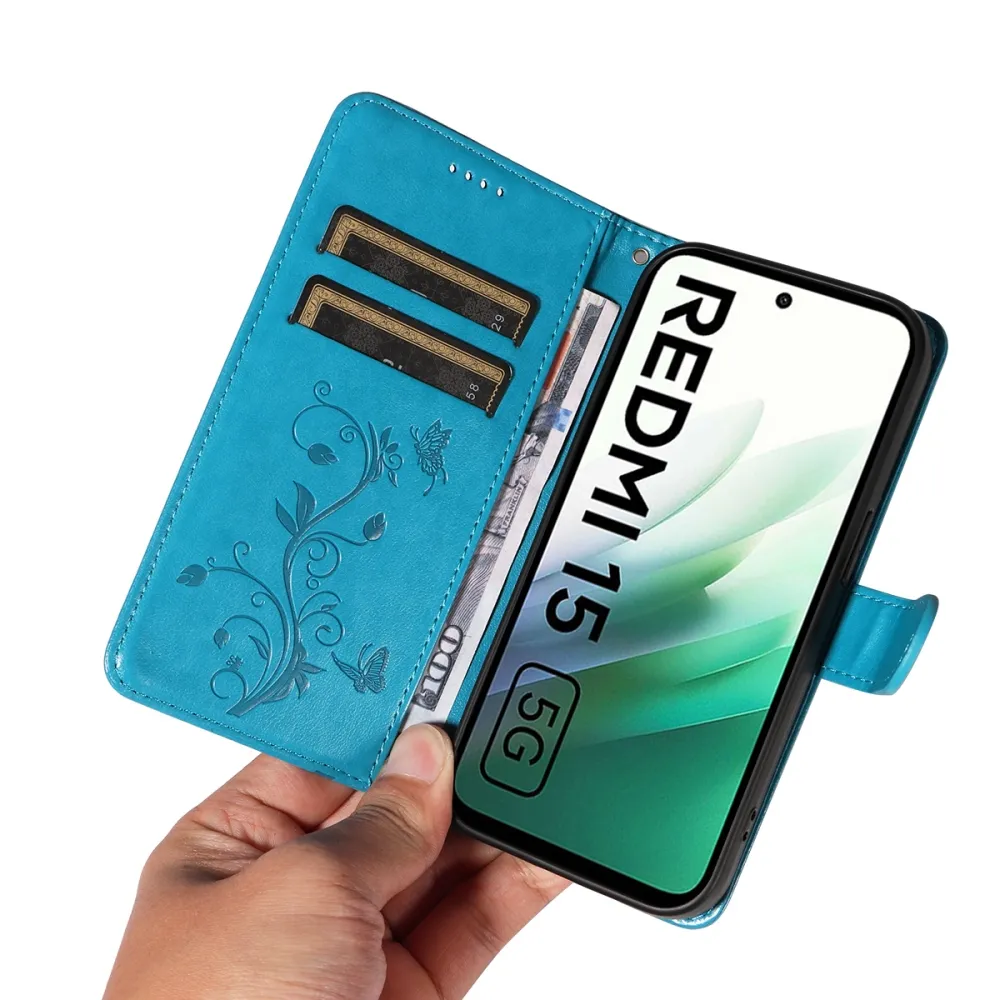 Flowers knížkové pouzdro na Xiaomi Redmi 15 5G (169mm) - modré