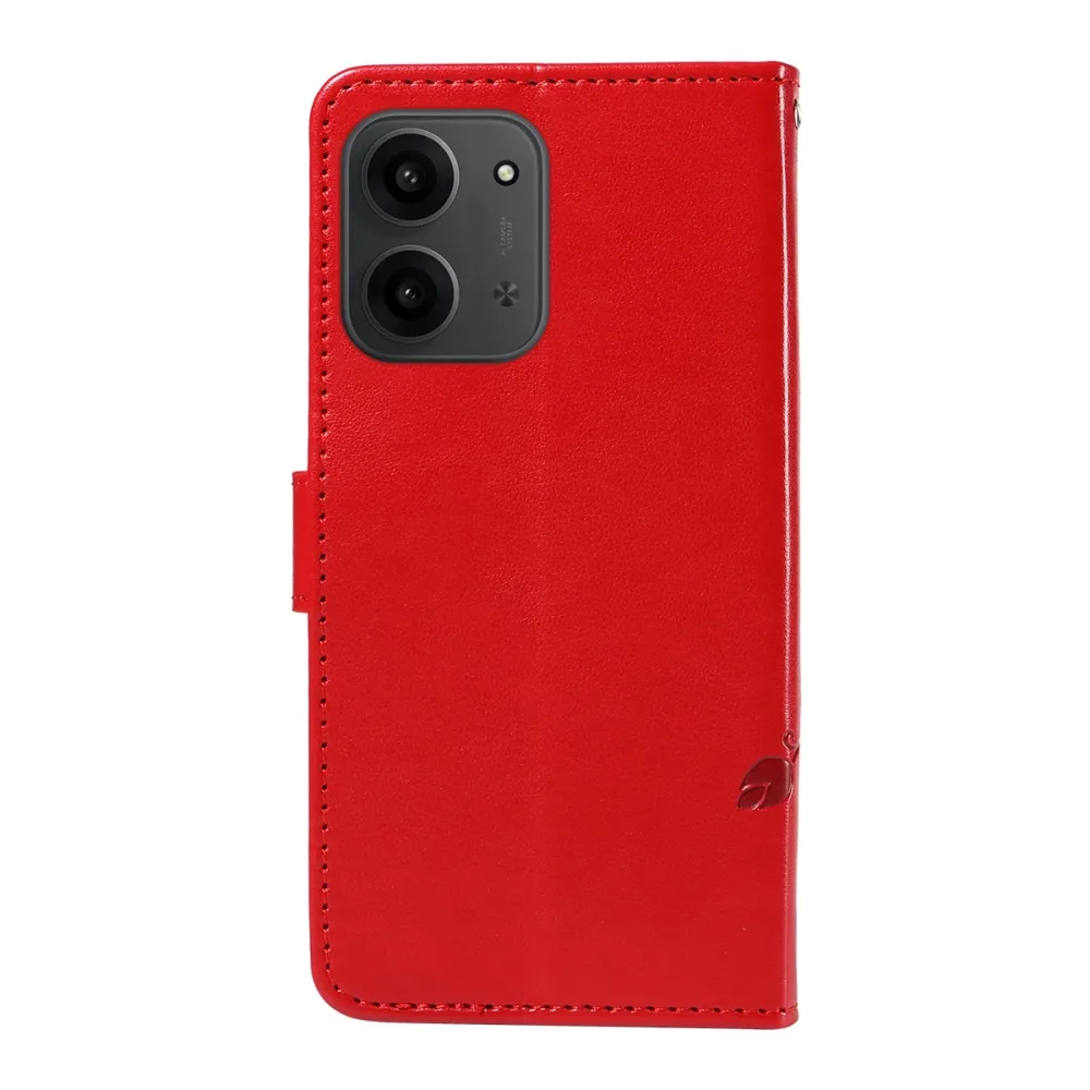 Červené peněženkové pouzdro Flowers na mobil Xiaomi Redmi 15C 4G/5G (173mm)