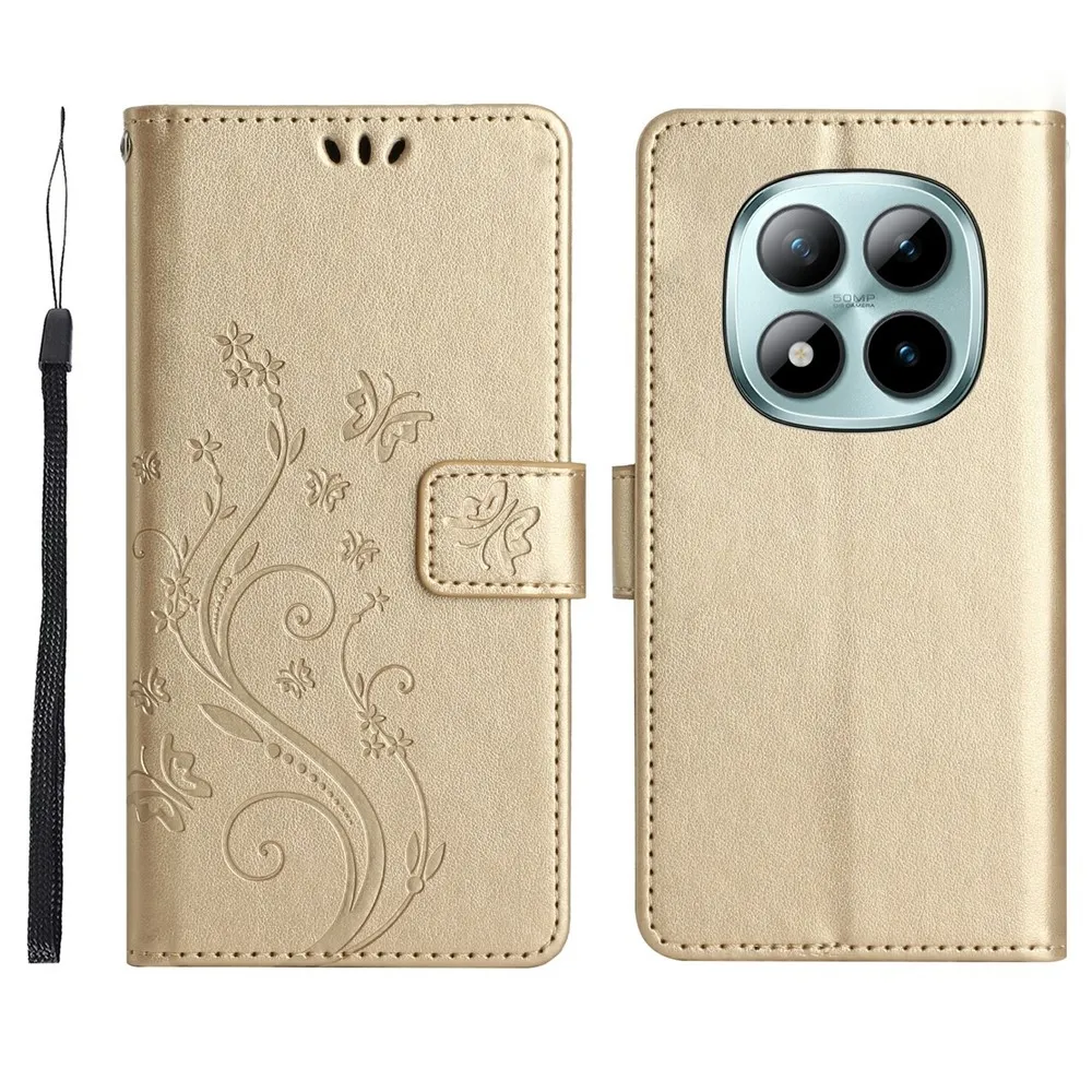 Flowers knížkové pouzdro na Xiaomi Redmi Note 15 Pro 4G - zlaté
