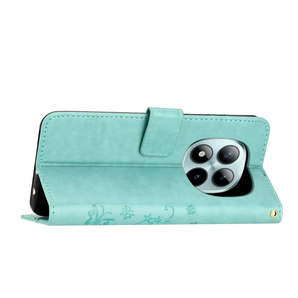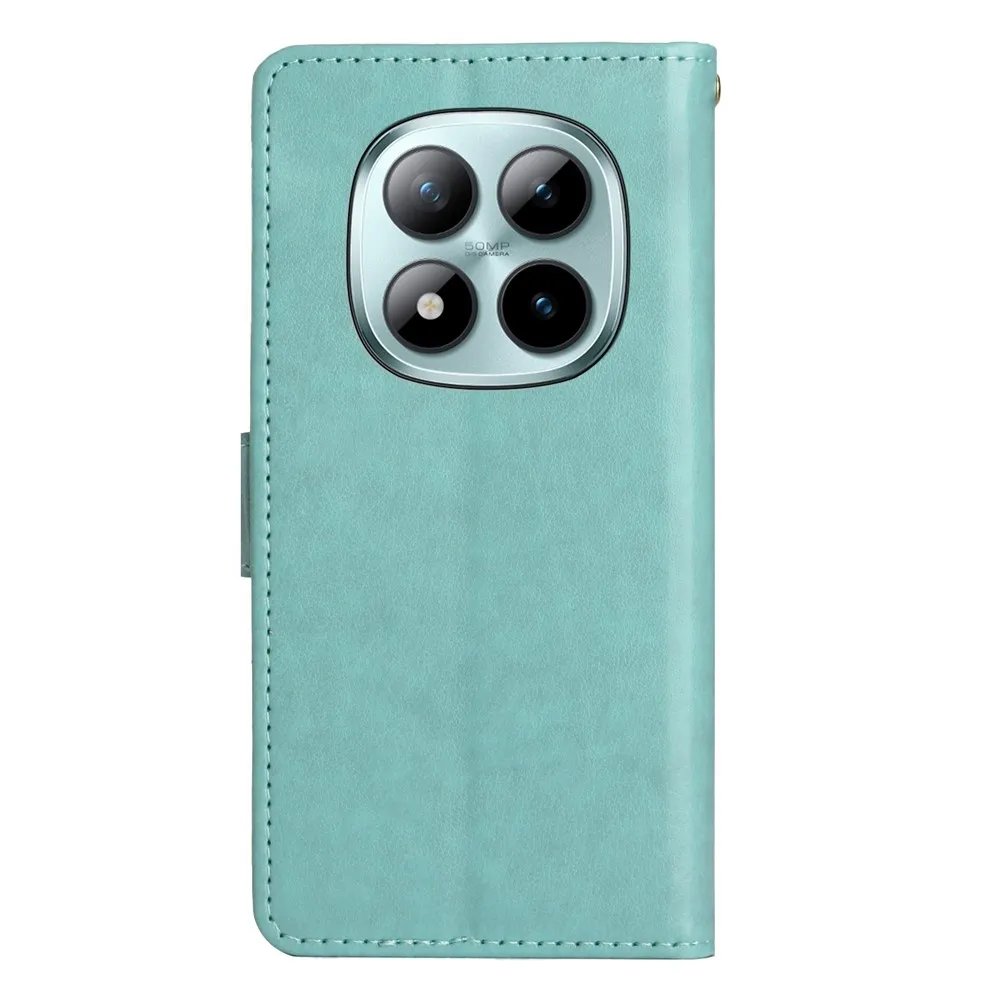 Modrozelené peněženkové pouzdro Flowers na mobil Xiaomi Redmi Note 15 Pro+ 5G