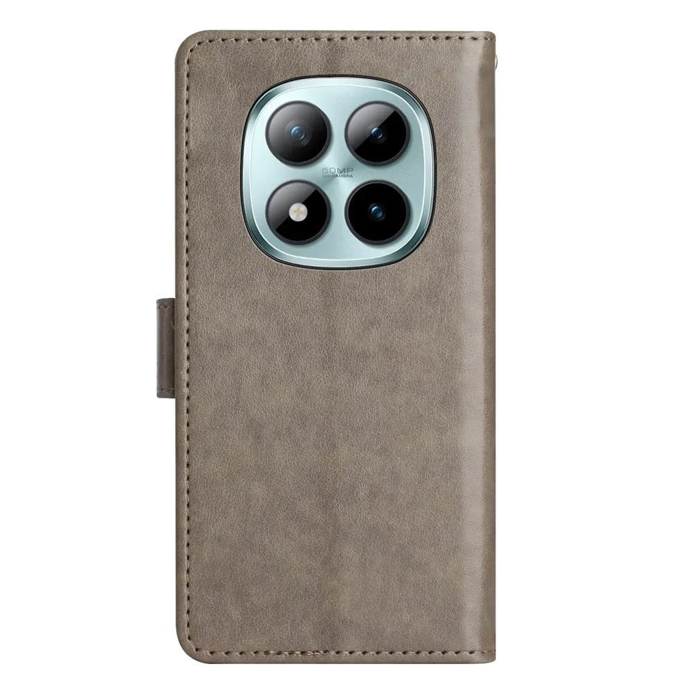 Šedé peněženkové pouzdro Flowers na mobil Xiaomi Redmi Note 15 Pro+ 5G