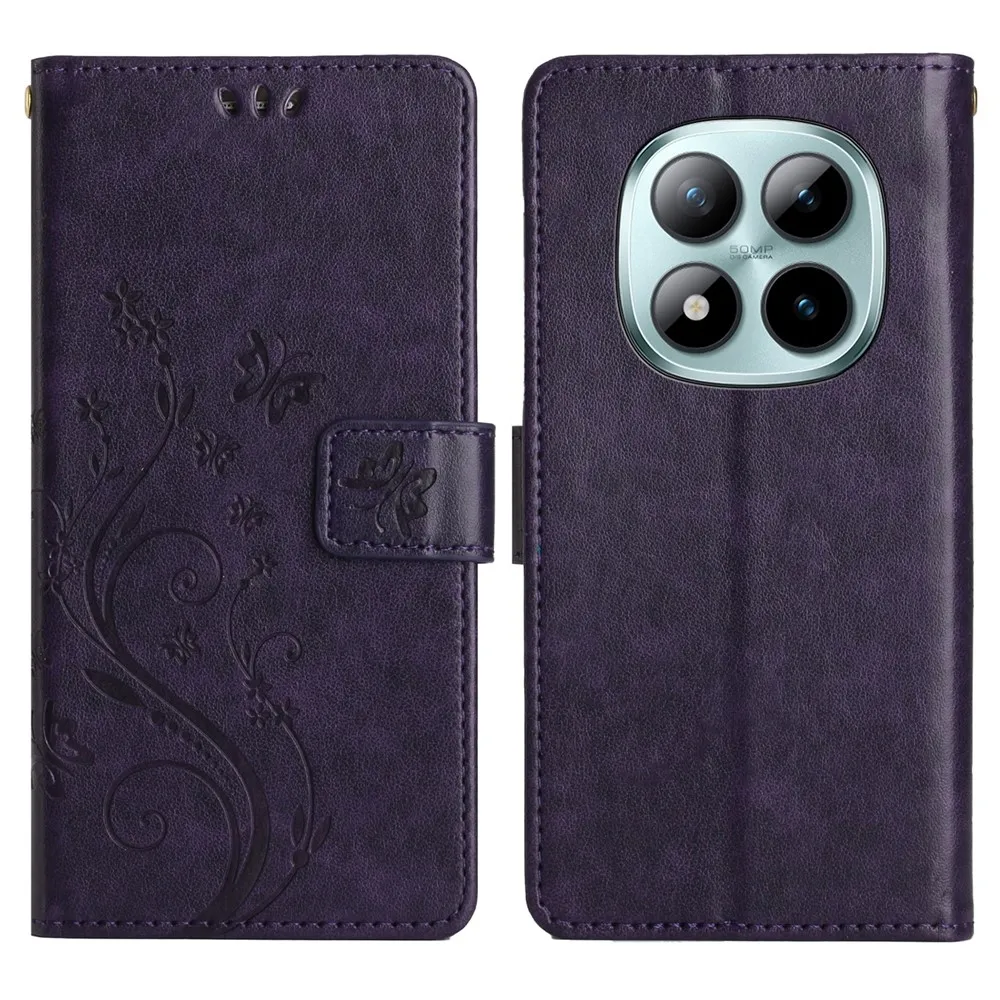 Tmavěfialové peněženkové pouzdro Flowers na mobil Xiaomi Redmi Note 15 Pro+ 5G