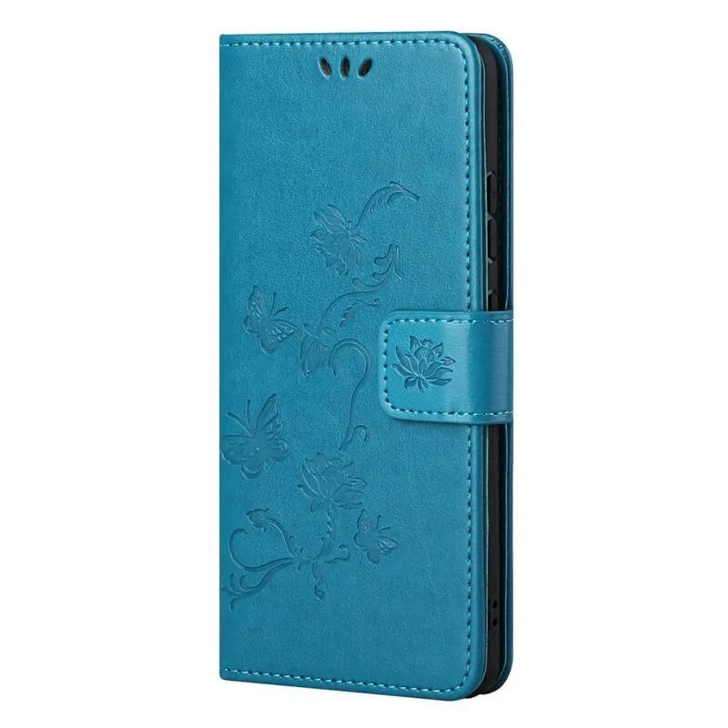 Flowers PU kožené peněženkové pouzdro na mobil Samsung Galaxy M52 5G - modré