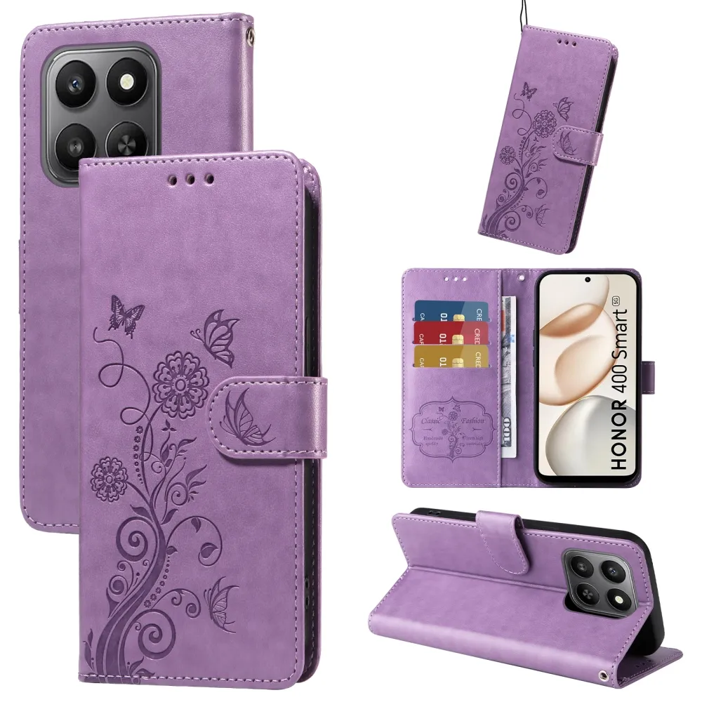 Flowery knížkové pouzdro Honor 400 Smart 5G/4G/Honor X7d - fialové