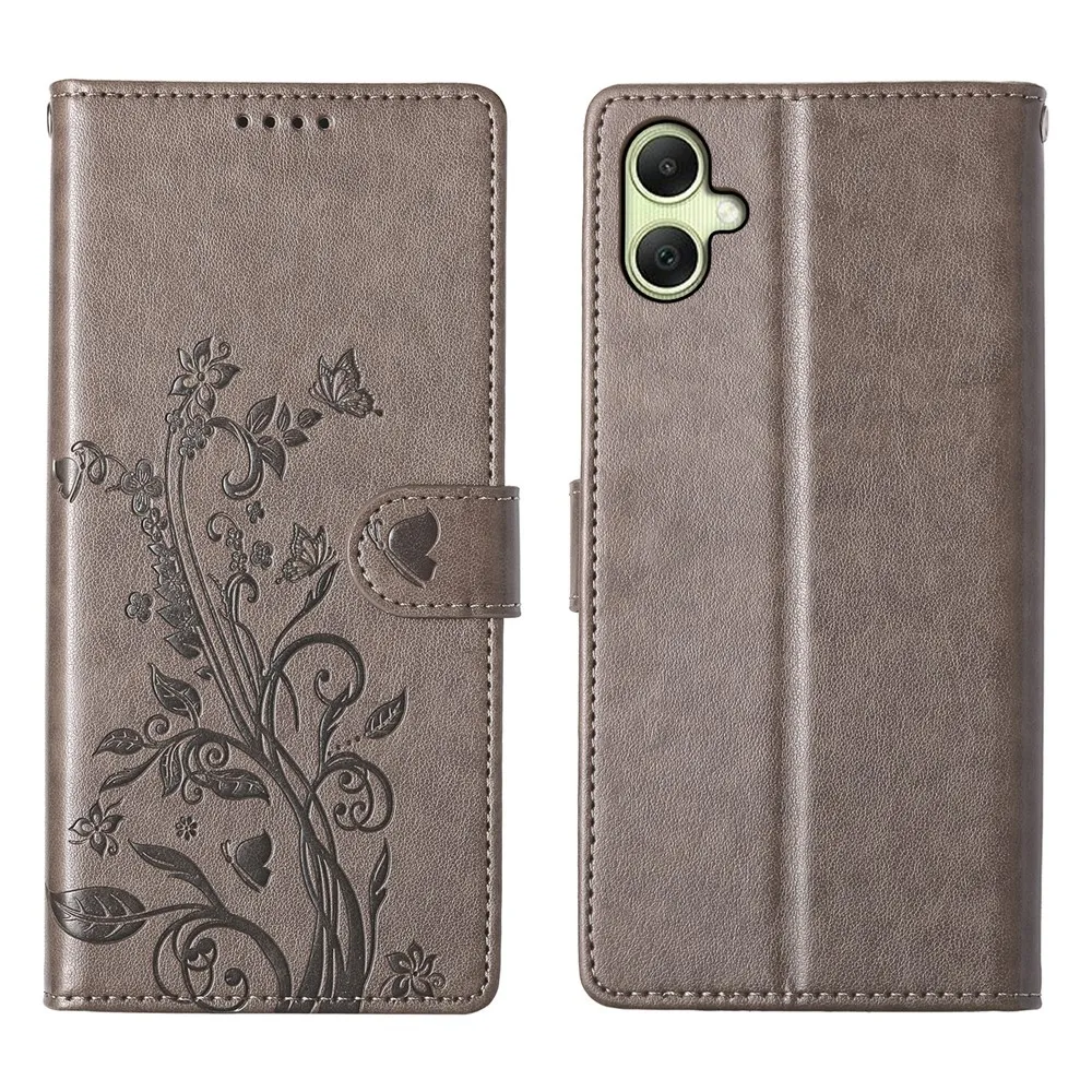 Flowery knížkové pouzdro na Samsung Galaxy A07 4G - šedé