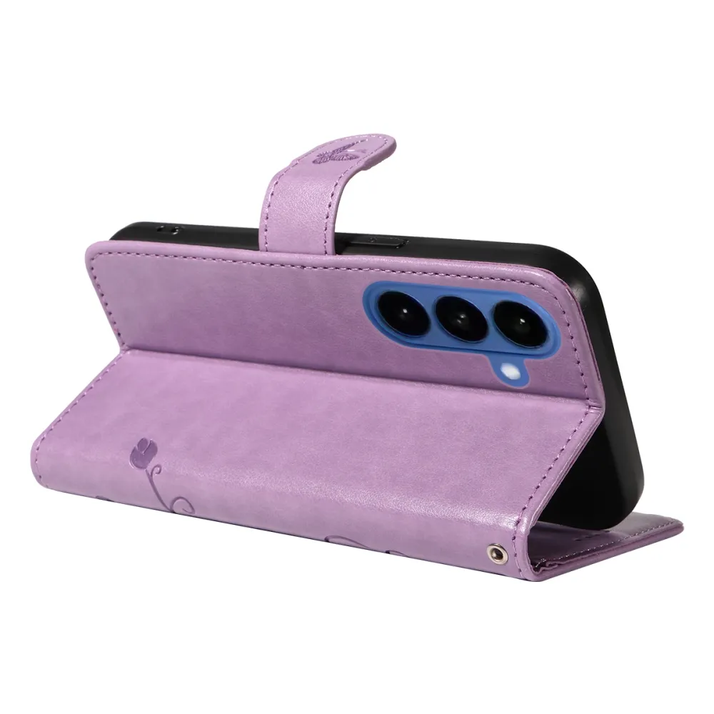 Flowery knížkové pouzdro na Samsung Galaxy S26/S26 Pro - fialové