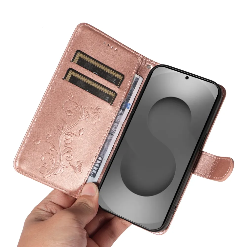 Růžovozlaté peněženkové pouzdro Flowery na mobil Samsung Galaxy S26 Ultra