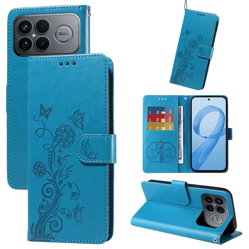 Modré peněženkové pouzdro Flowery na mobil Xiaomi Poco F8 Ultra 5G