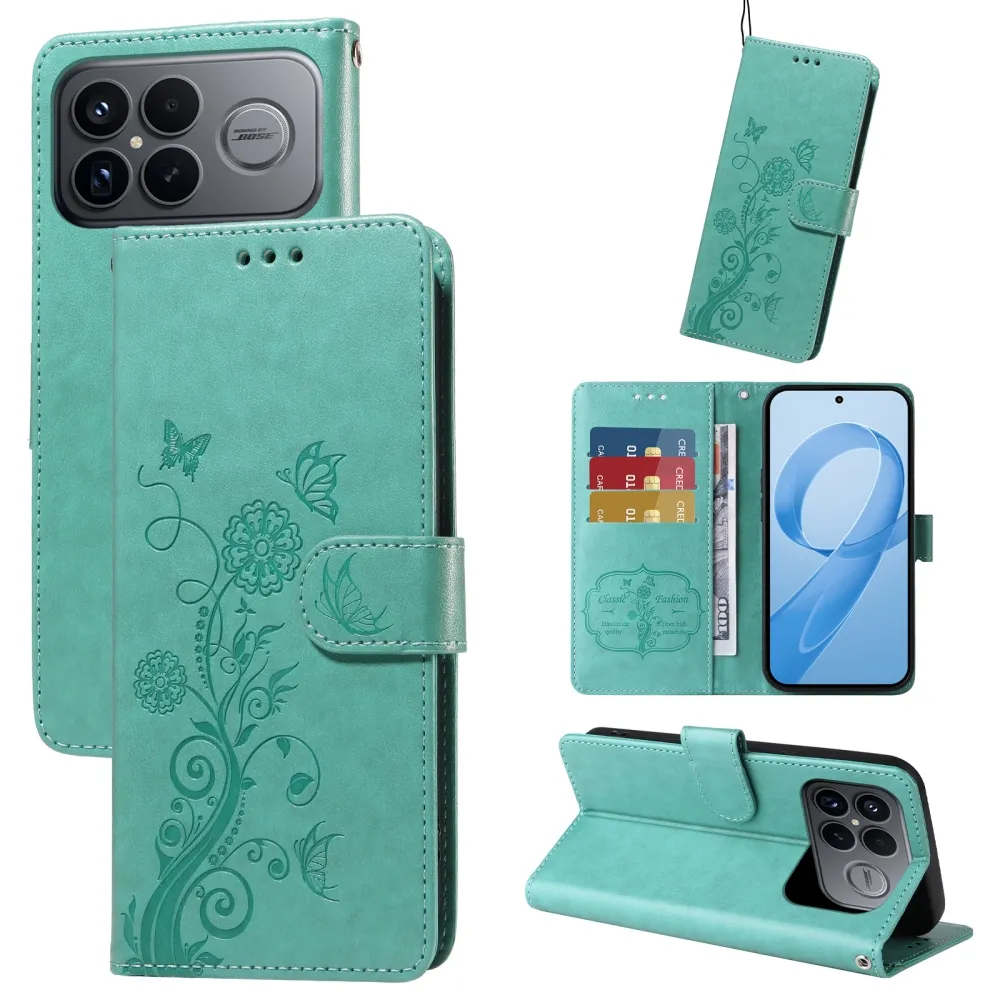 Modrozelené peněženkové pouzdro Flowery na mobil Xiaomi Poco F8 Ultra 5G