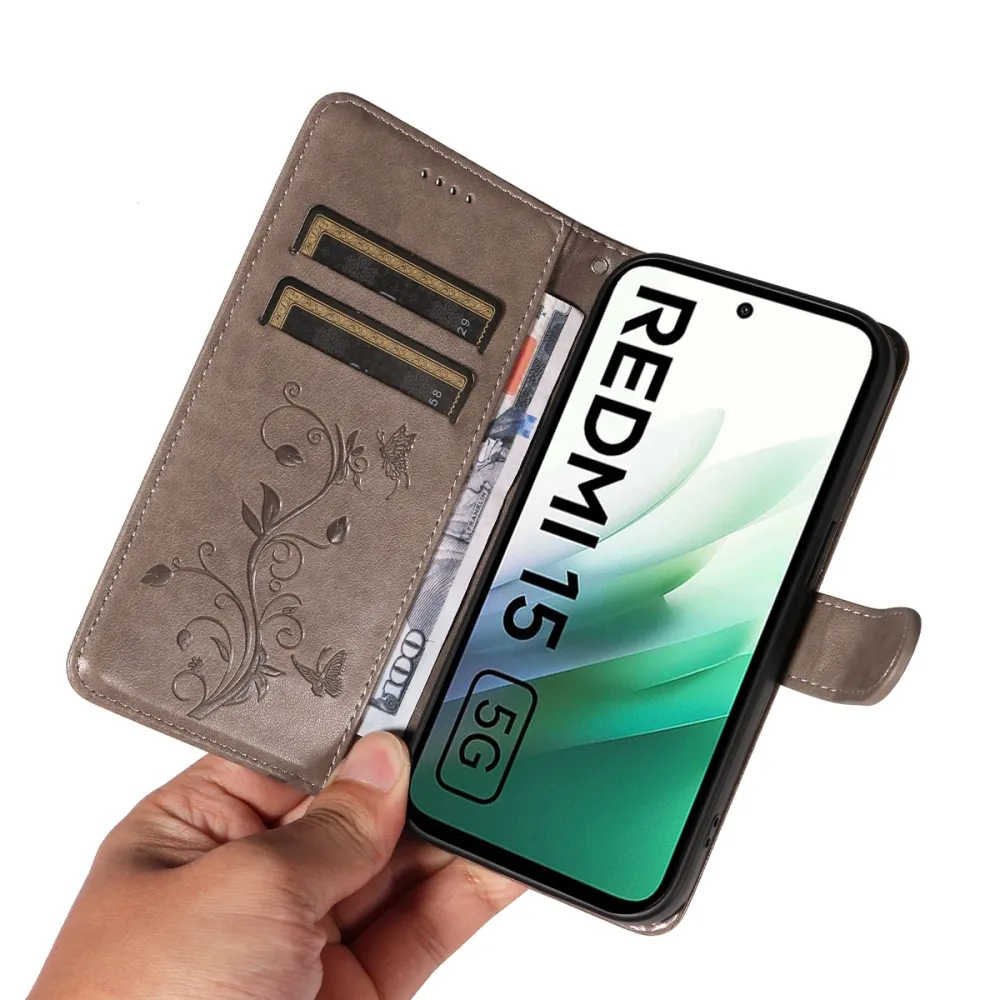 Flowery knížkové pouzdro na Xiaomi Redmi 15 4G (171mm) - šedé