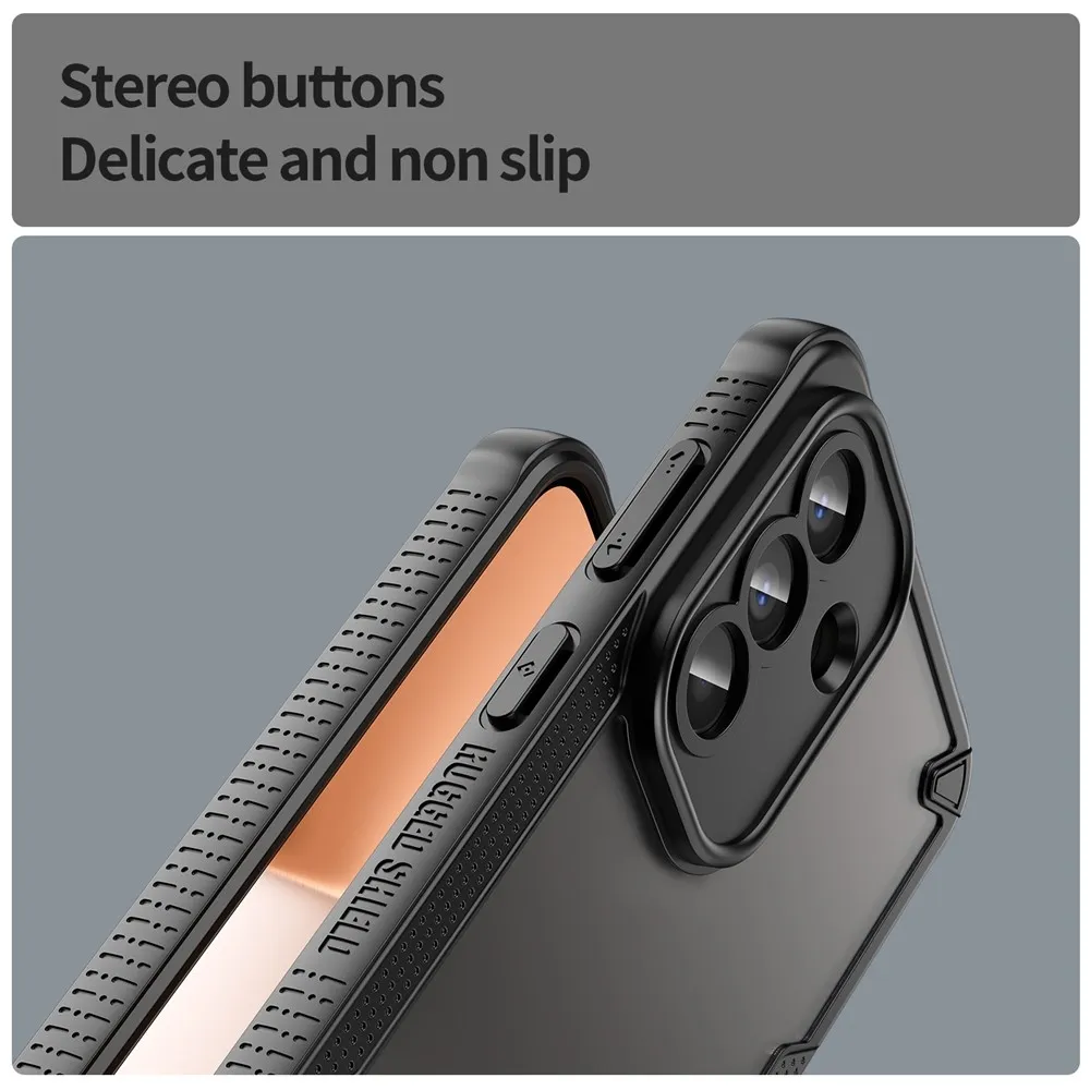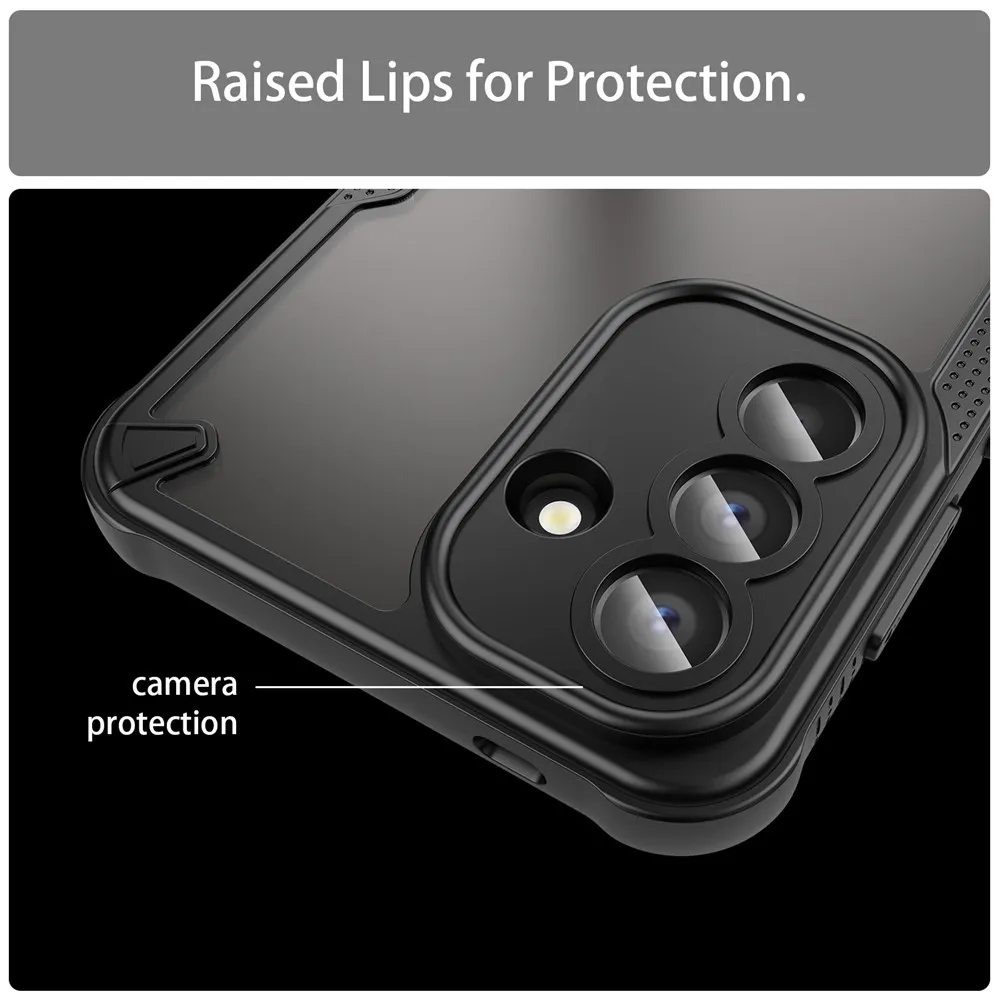 ✅【Odolná a lehká konstrukce】 Frosted odolný obal v černé barvě na mobil Samsung Galaxy A57 5G je vyroben z pevného PC + měkkého TPU, pouzdro je odolné a lehké a nabízí robustní ochranu, aniž by vašemu telefonu přidávalo objem ✅【Gelový okraj】 TPU pevný měkký okraj se stereo tlačítky, pohodlné uchopení, poskytuje bezpečné uchopení a snižuje riziko náhodných pádů ✅【Vyztužené rohy】 Konstrukce čtyřrohového airbagu poskytuje zvýšenou ochranu a zlepšuje odolnost vašeho zařízení proti nárazům a pádu ✅【Ochrana fotoaparátu a obrazovky】 1 mm zvýšený okraj kolem fotoaparátu a obrazovky poskytuje maximální ochranu proti poškrábání a pádům ✅【Stylový a praktický design】 Poloprůhledný matný povrch nejen vylepšuje estetiku vašeho telefonu, ale také odolává otiskům prstů a šmouhám, takže váš telefon vypadá elegantně. ✅【Přesné výřezy pro snadný přístup】 Díky přesným výřezům umožňuje pouzdro snadný přístup ke všem tlačítkům, portům a fotoaparátům, což zajišťuje plnou funkčnost bez nutnosti vyjímání pouzdra