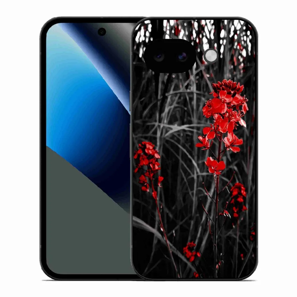 Květinové pouzdro na Google Pixel 10a - červená rostlina poskytuje všechny výhody gelových obalů, a to v zajímavém designu.