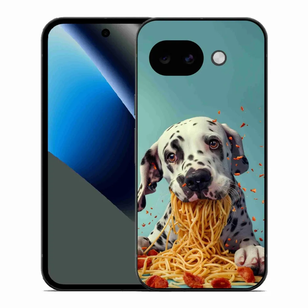 Pružný gelový obal mmCase s obrázkem na Google Pixel 10a - dalmatin a špagety