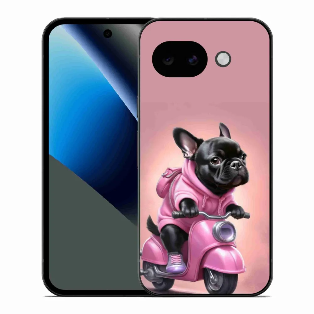 Psí pouzdro na Google Pixel 10a - francouzský buldoček na skútru poskytuje všechny výhody gelových obalů, a to v zajímavém designu.