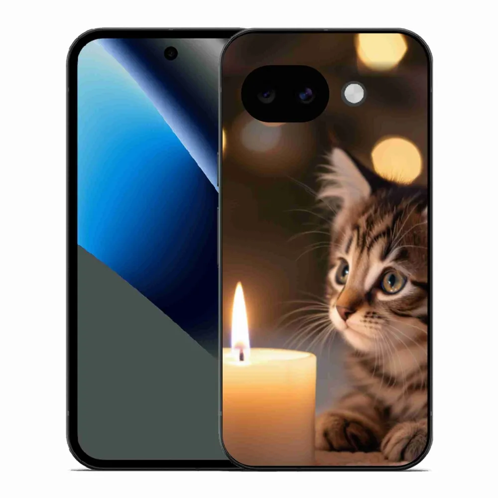 Pružný gelový obal mmCase s obrázkem na Google Pixel 10a - kotě a svíčka