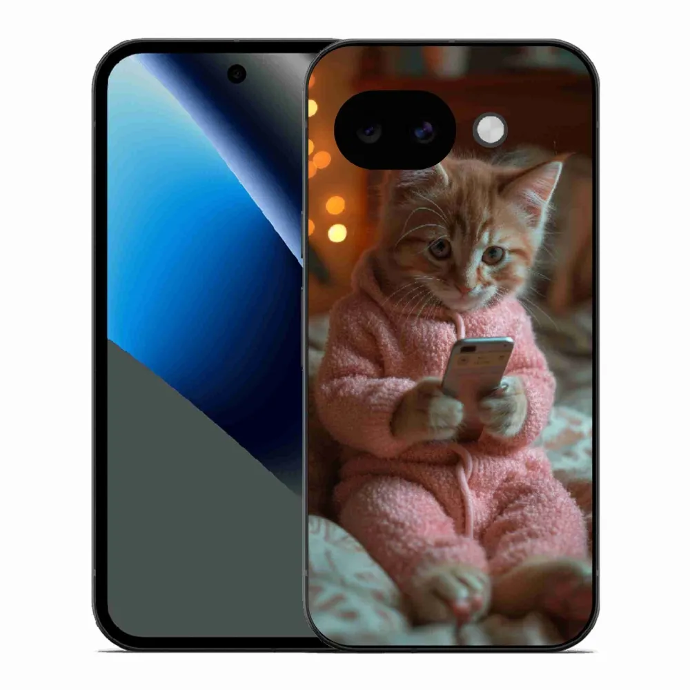 Pružný gelový obal mmCase s obrázkem na Google Pixel 10a - kotě s mobilem