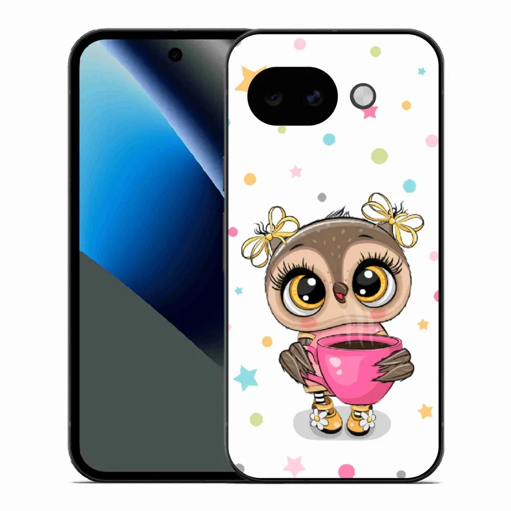 Zvířecí pouzdro na Google Pixel 10a - kreslená sovička poskytuje všechny výhody gelových obalů, a to v zajímavém designu.