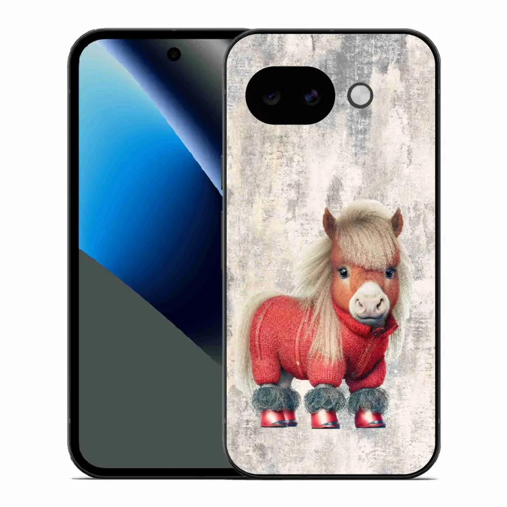 Pouzdro s motivem koně na Google Pixel 10a - poník ve svetru poskytuje všechny výhody gelových krytů, a to v zajímavém designu.