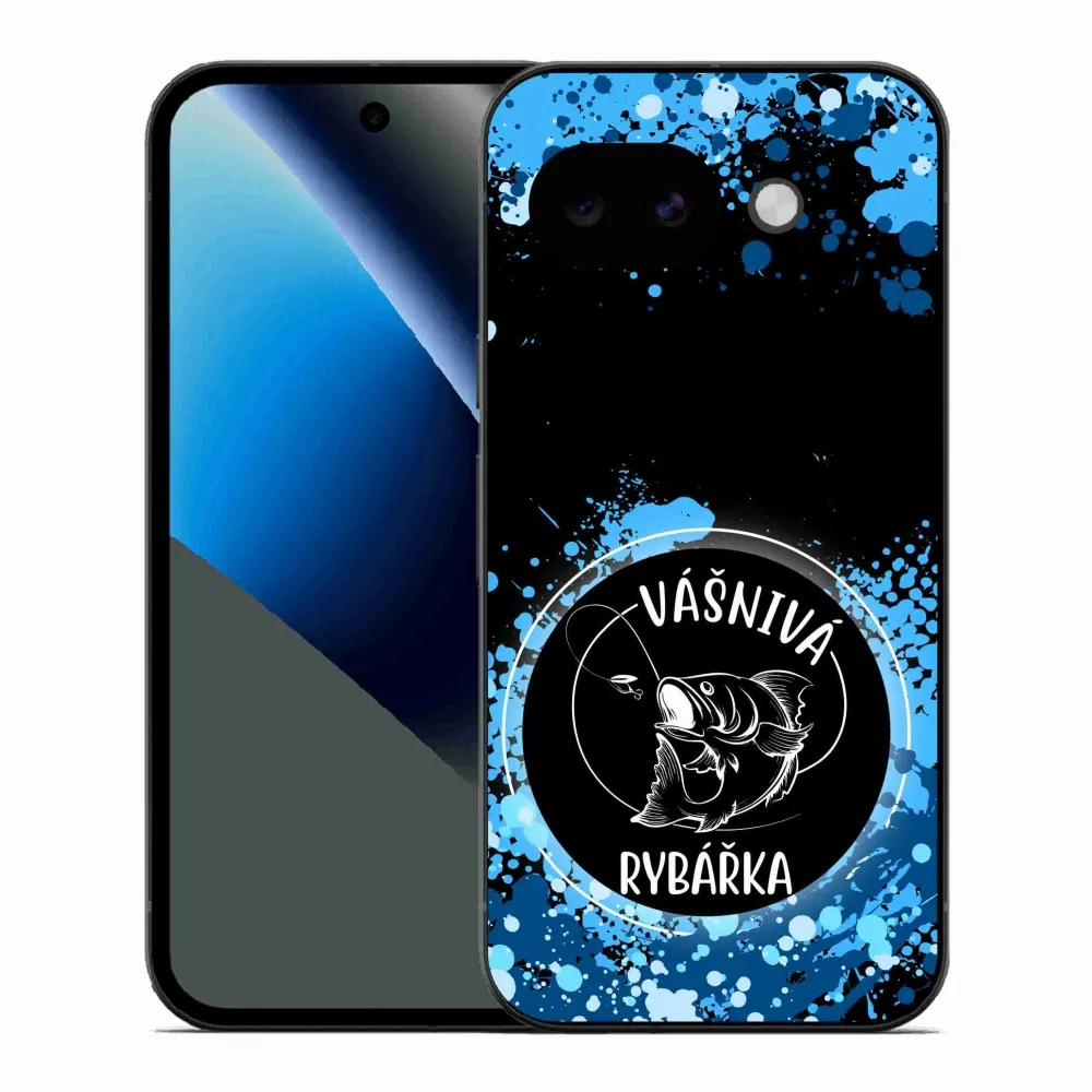 Pružný gelový obal mmCase s obrázkem na Google Pixel 10a - vášnivá rybářka černé pozadí
