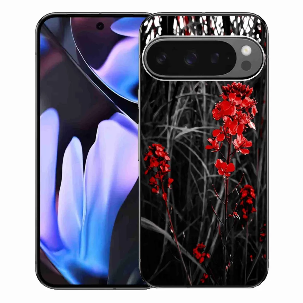 Květinové pouzdro na Google Pixel 9 Pro XL - červená rostlina poskytuje všechny výhody gelových obalů, a to v zajímavém designu.