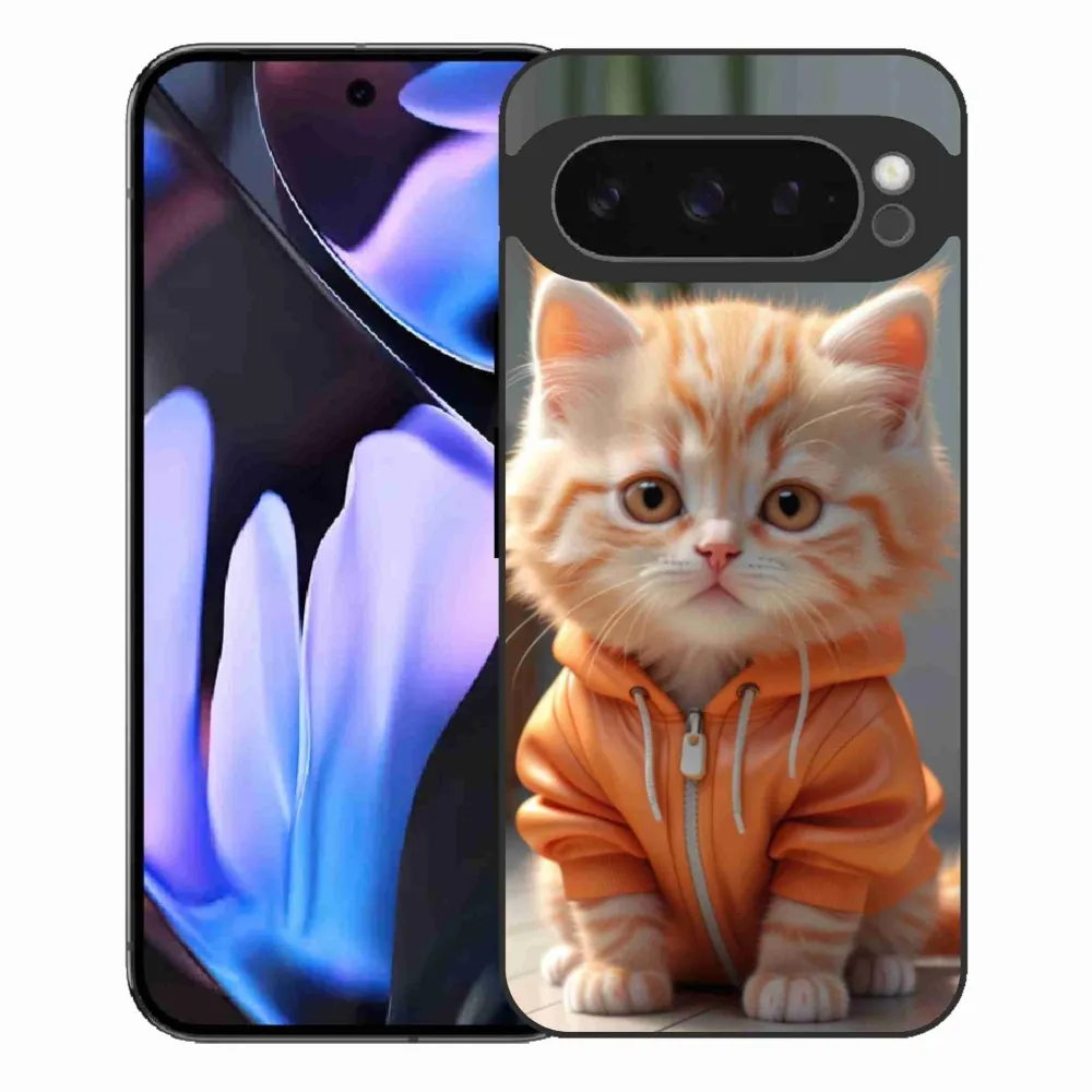 Kočičí pouzdro na Google Pixel 9 Pro XL - kotě v mikině poskytuje všechny výhody gelových obalů, a to v zajímavém designu.