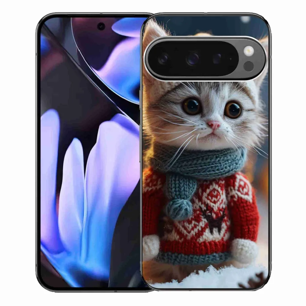 Pružný gelový obal mmCase s obrázkem na Google Pixel 9 Pro XL - kotě ve svetru