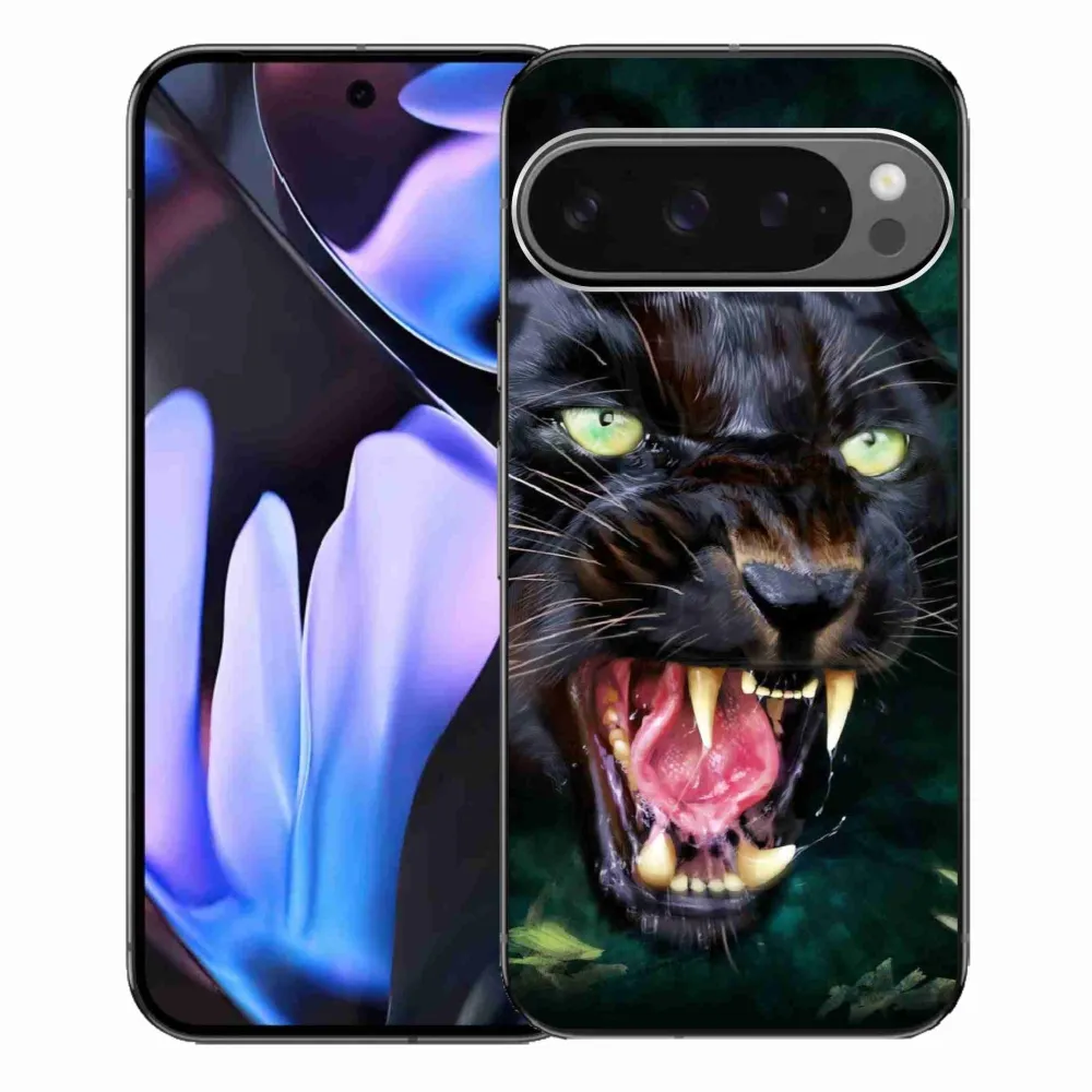 Pouzdro se šelmou na Google Pixel 9 Pro XL - rozzuřený černý panter poskytuje všechny výhody gelových krytů, a to v zajímavém designu.