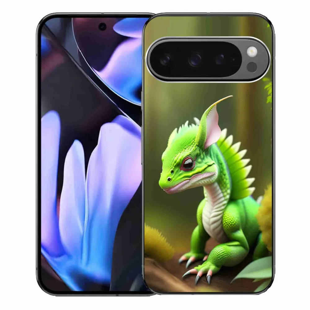 Zvířecí pouzdro na Google Pixel 9 Pro XL - zelený dráček poskytuje všechny výhody gelových obalů, a to v zajímavém designu.