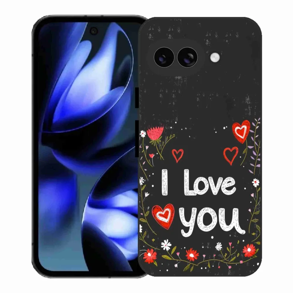 Pouzdro na Google Pixel 9a - I love you černé pozadí poskytuje všechny výhody gelových obalů, a to v zajímavém designu.