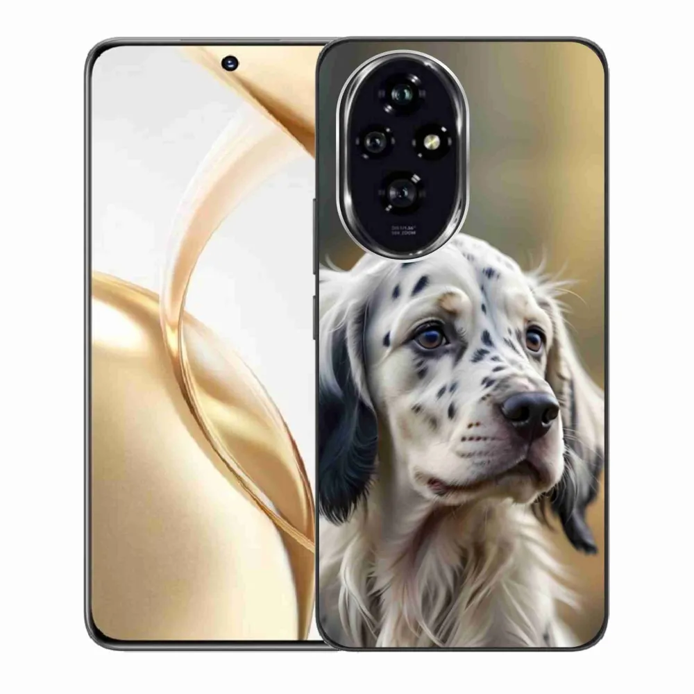 Psí pouzdro na Honor 200 5G - anglický setr poskytuje všechny výhody gelových obalů, a to v zajímavém designu.