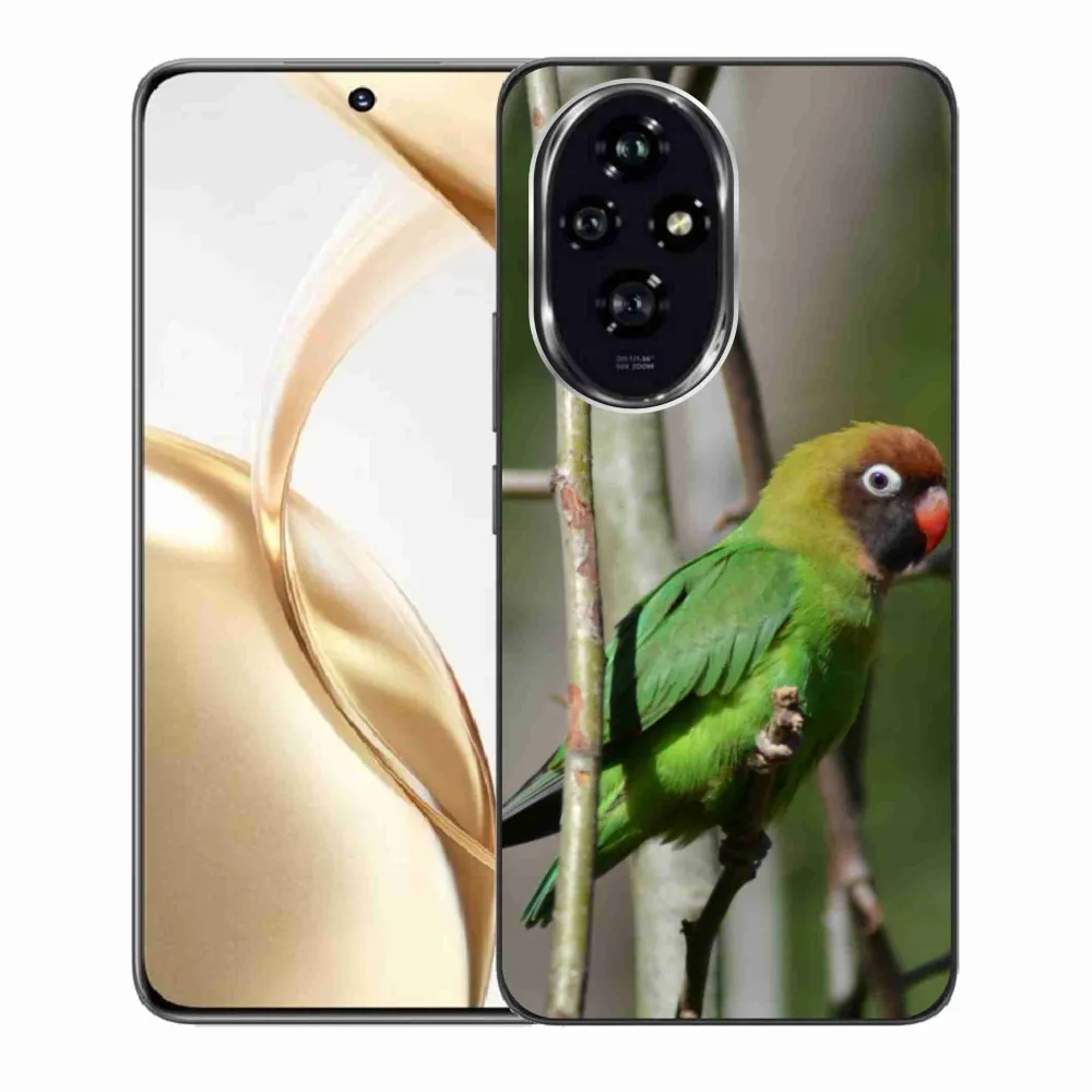Ptačí pouzdro na Honor 200 5G - papoušek agapornis poskytuje všechny výhody gelových obalů, a to v zajímavém designu.