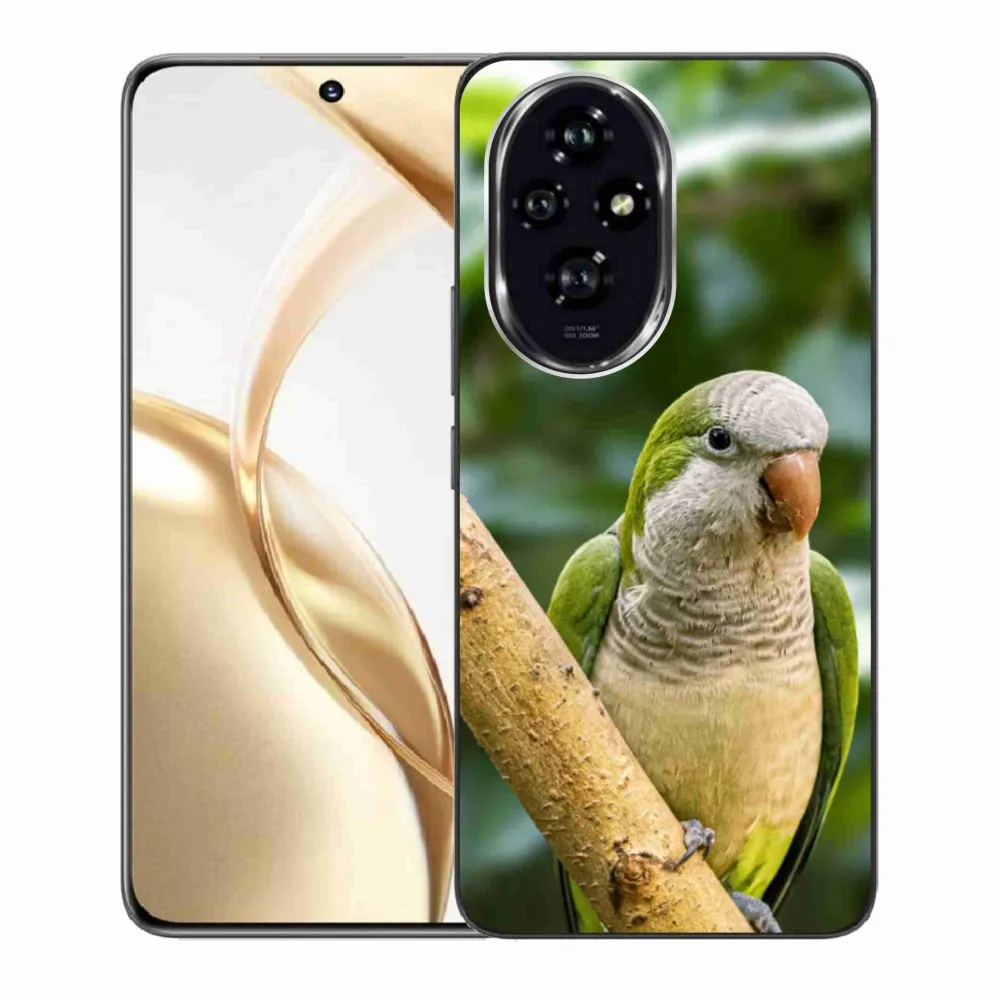 Ptačí pouzdro na Honor 200 5G - papoušek mníšek poskytuje všechny výhody gelových obalů, a to v zajímavém designu.