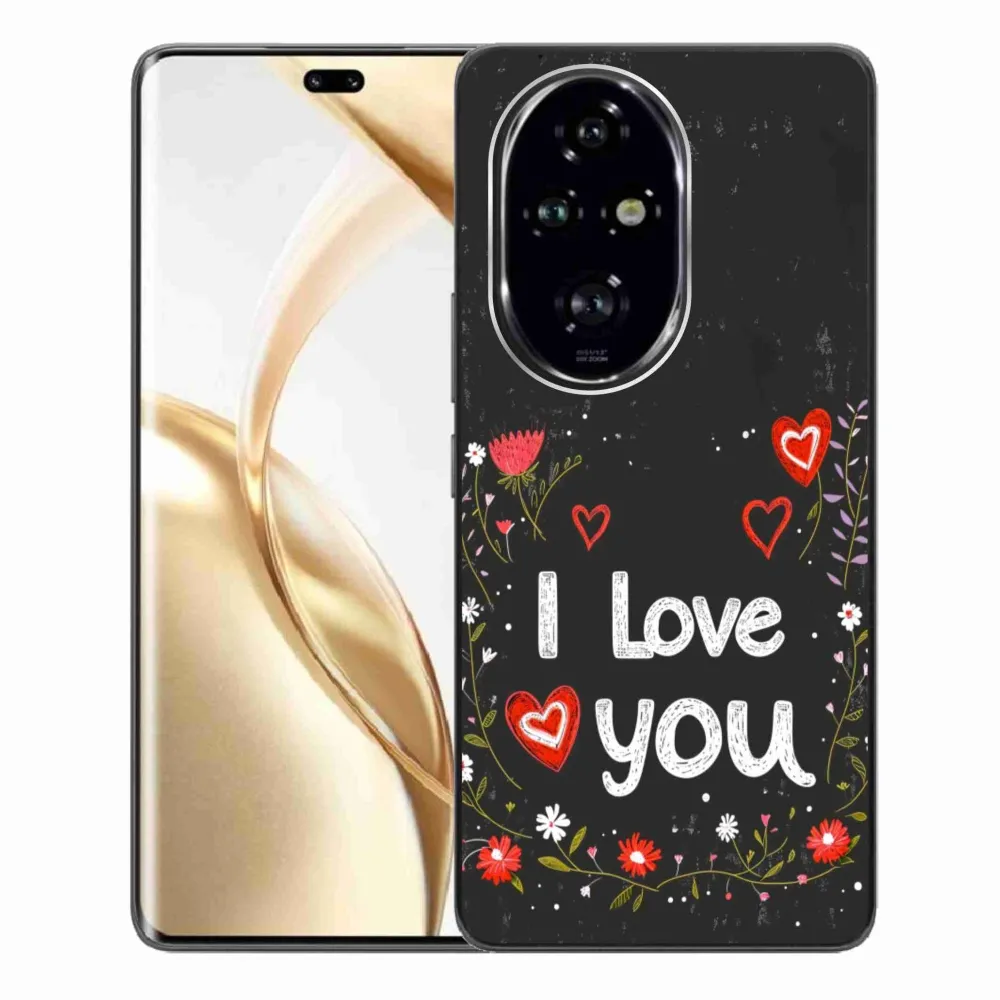 Pouzdro na Honor 200 Pro 5G - I love you černé pozadí poskytuje všechny výhody gelových obalů, a to v zajímavém designu.