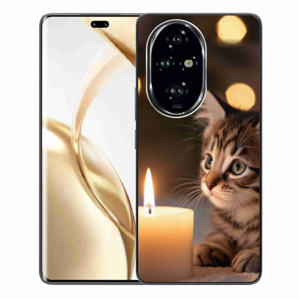 Pružný gelový obal mmCase s obrázkem na Honor 200 Pro 5G - kotě a svíčka