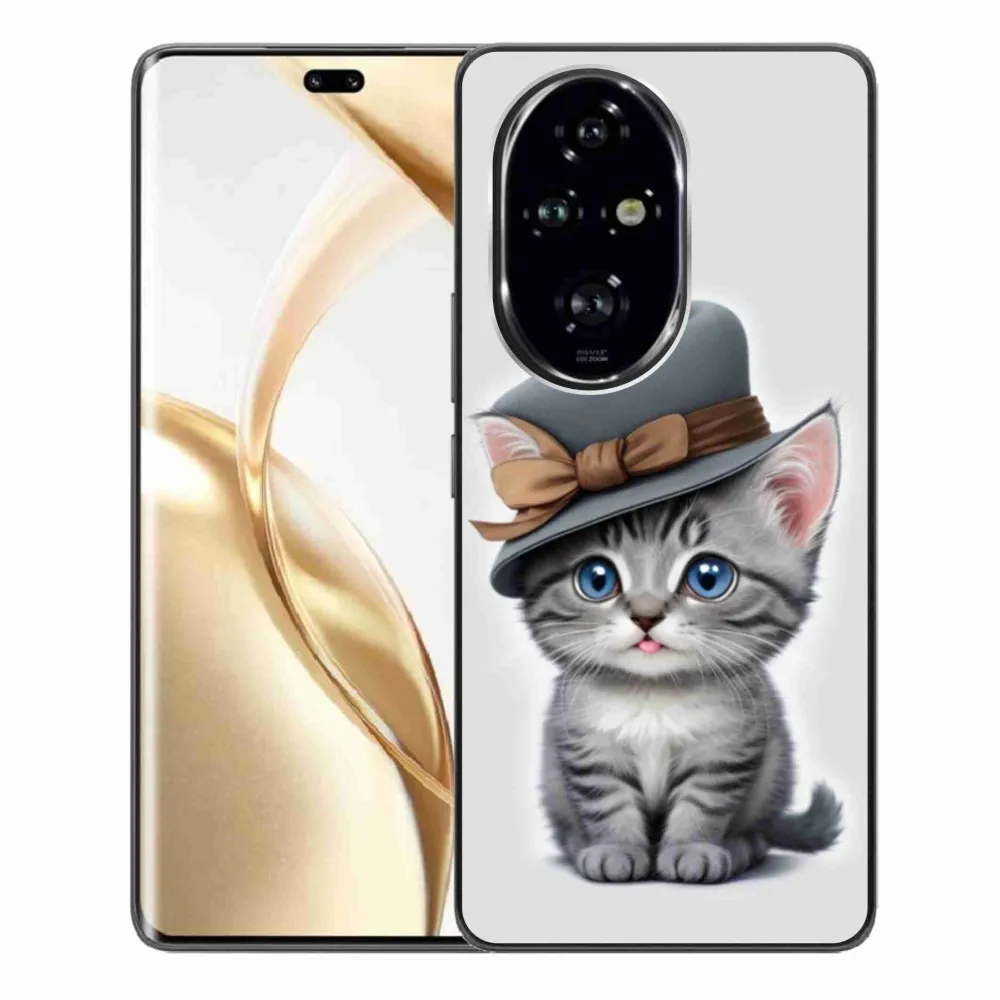 Kočičí pouzdro na Honor 200 Pro 5G - kotě s kloboukem poskytuje všechny výhody gelových obalů, a to v zajímavém designu.
