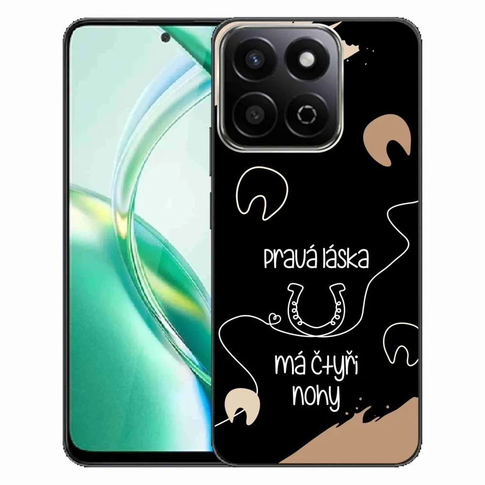 Pouzdro s motivem koně na Honor 200 Smart 5G - koňský motiv černé pozadí poskytuje všechny výhody gelových krytů, a to v zajímavém designu.