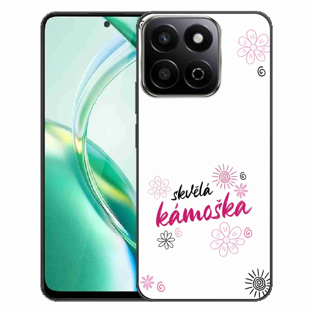 Pouzdro, na kterém je zajímavý text má název - skvělá kámoška bílé pozadí a je na Honor 200 Smart 5G poskytuje všechny výhody gelových krytů, a to v zajímavém designu.