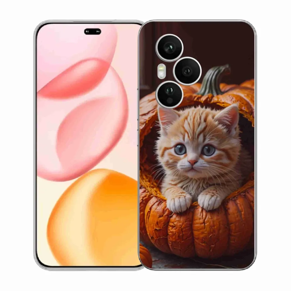 Kočičí pouzdro na Honor 400 Pro - kotě a dýně 2 poskytuje všechny výhody gelových obalů, a to v zajímavém designu.