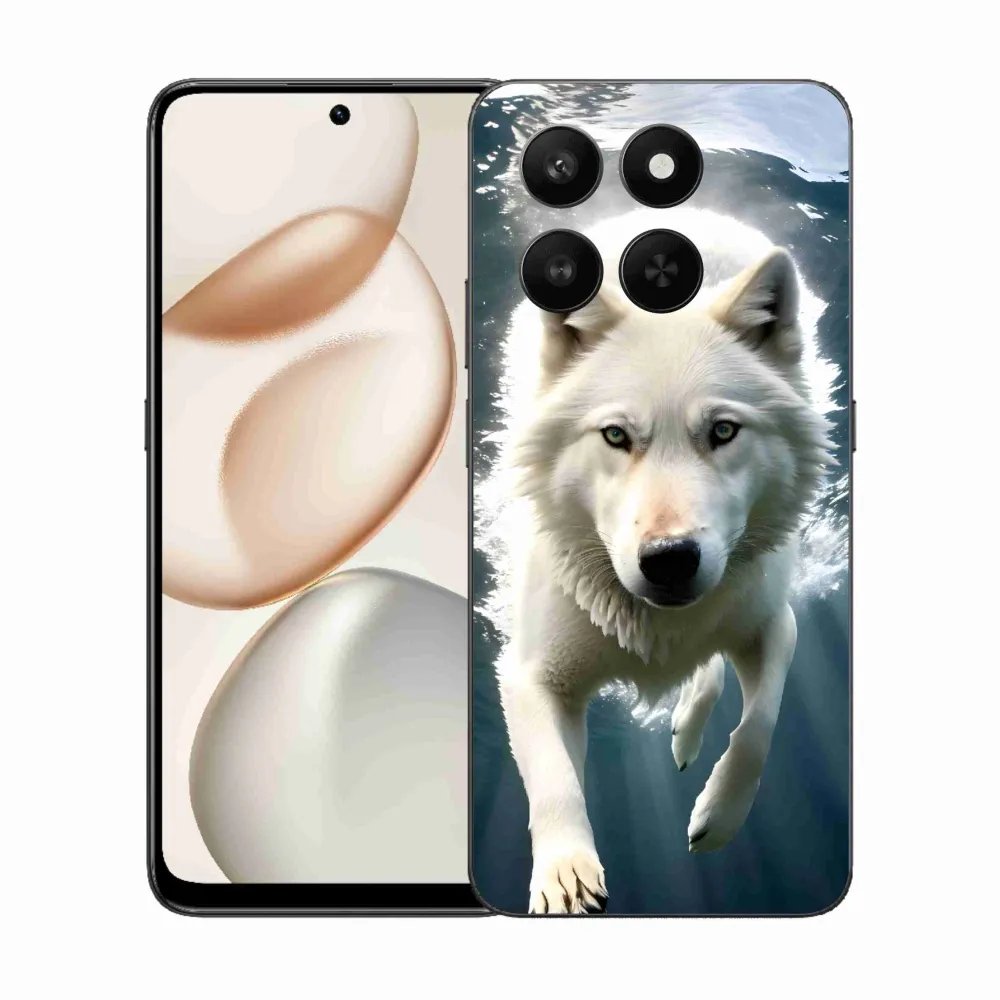 Pouzdro se šelmou na Honor 400 Smart 5G/4G/Honor X7d - bílý vlk poskytuje všechny výhody gelových krytů, a to v zajímavém designu.