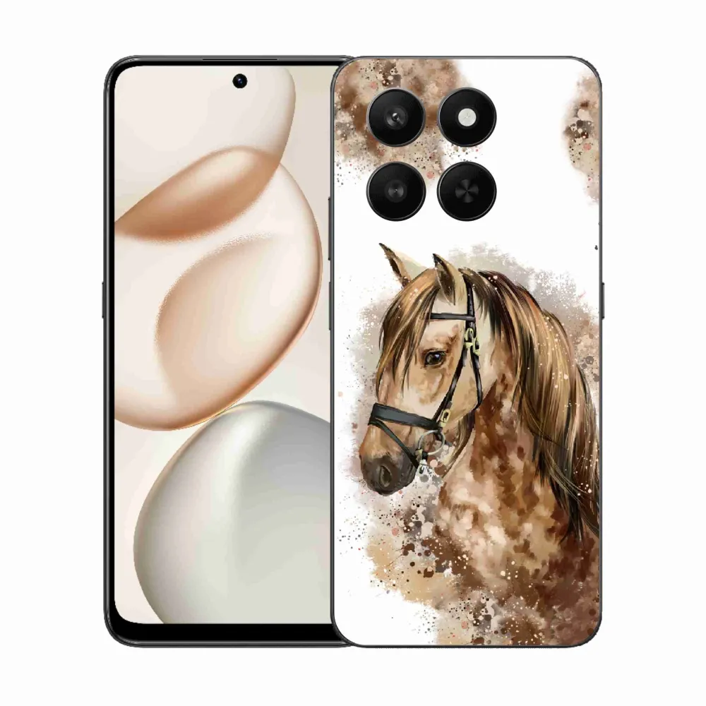 Pružný gelový obal mmCase s obrázkem na Honor 400 Smart 5G/4G/Honor X7d - hnědý kreslený kůň