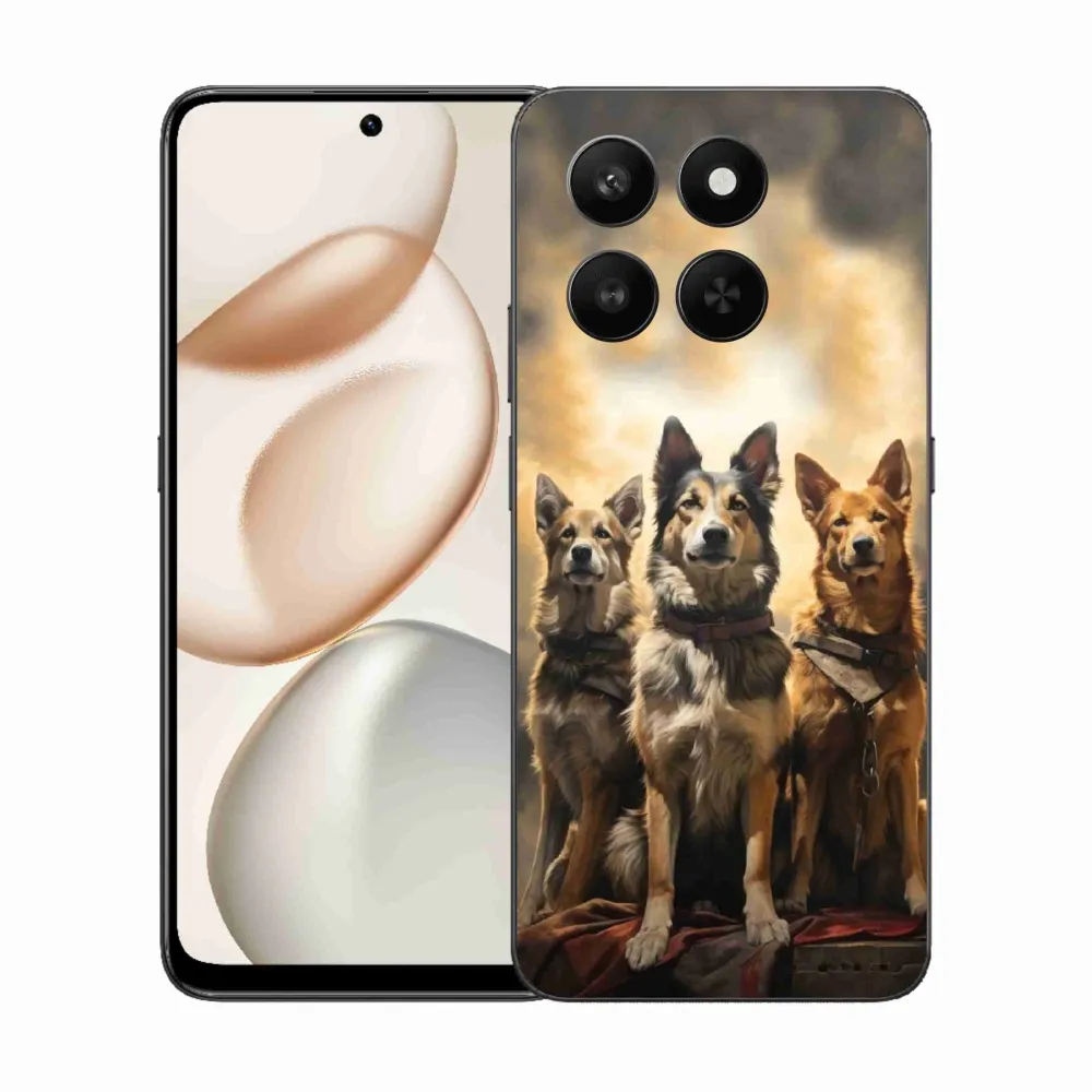 Psí pouzdro na Honor 400 Smart 5G/4G/Honor X7d - tři psi poskytuje všechny výhody gelových krytů, a to v zajímavém designu.