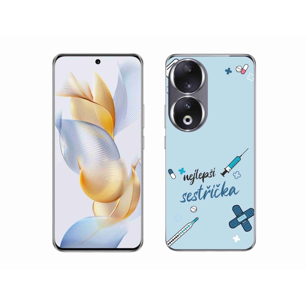 Pouzdro s motivem zdravotnictví na Honor 90 - nejlepší sestřička modré pozadí poskytuje všechny výhody gelových obalů, a to v zajímavém designu.