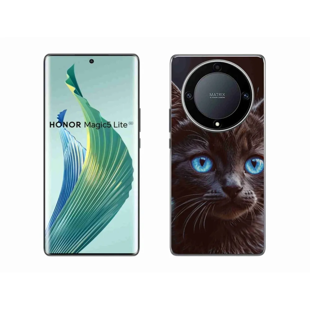 Pružný gelový obal mmCase s obrázkem na Honor Magic 5 Lite 5G - černé kotě 2